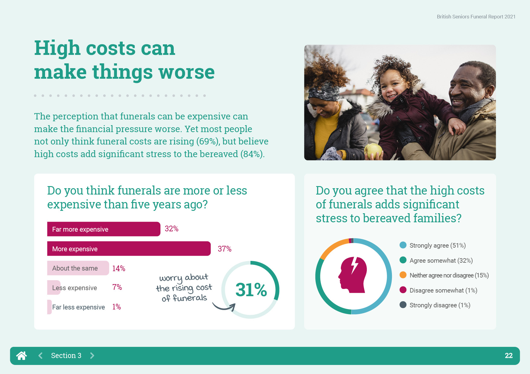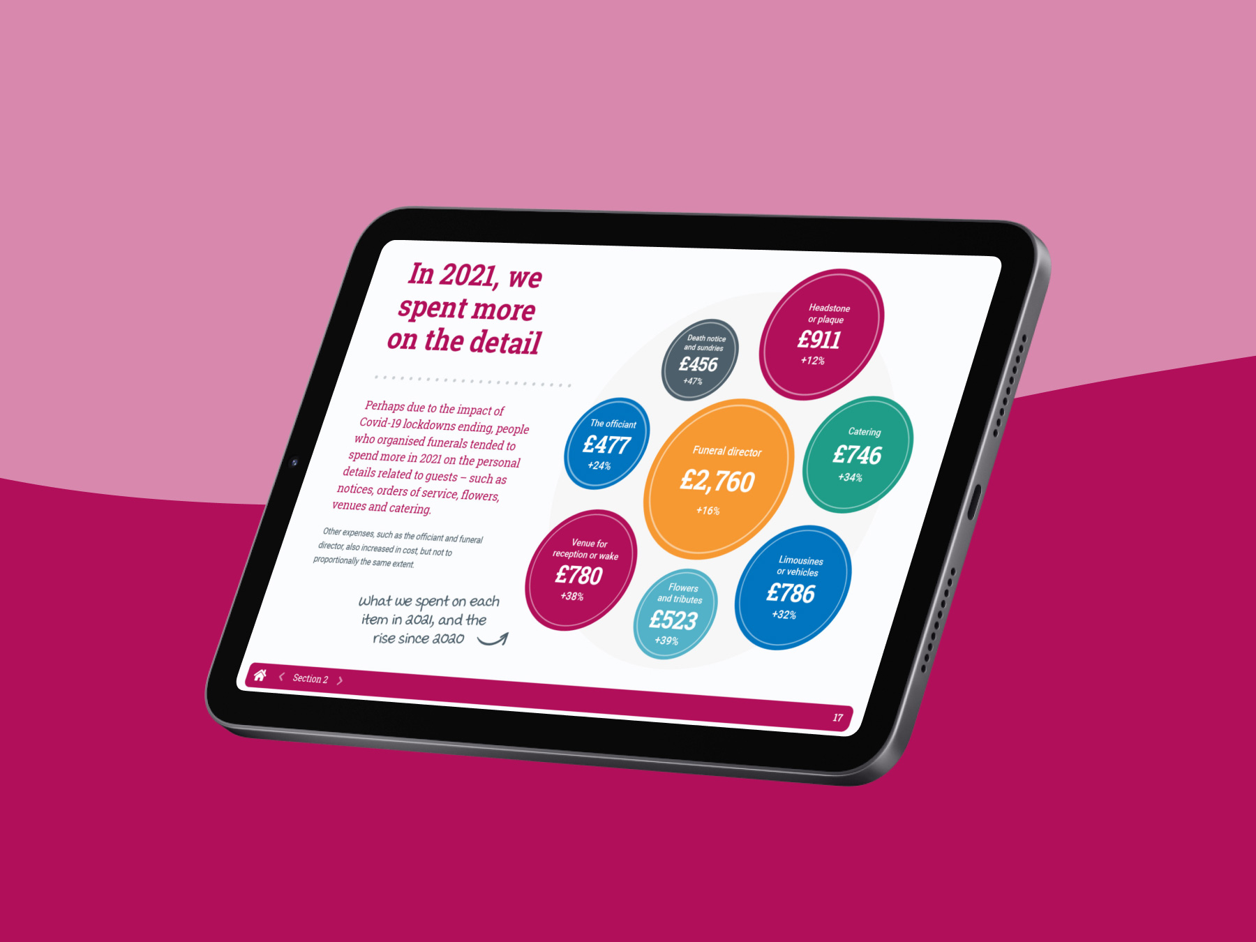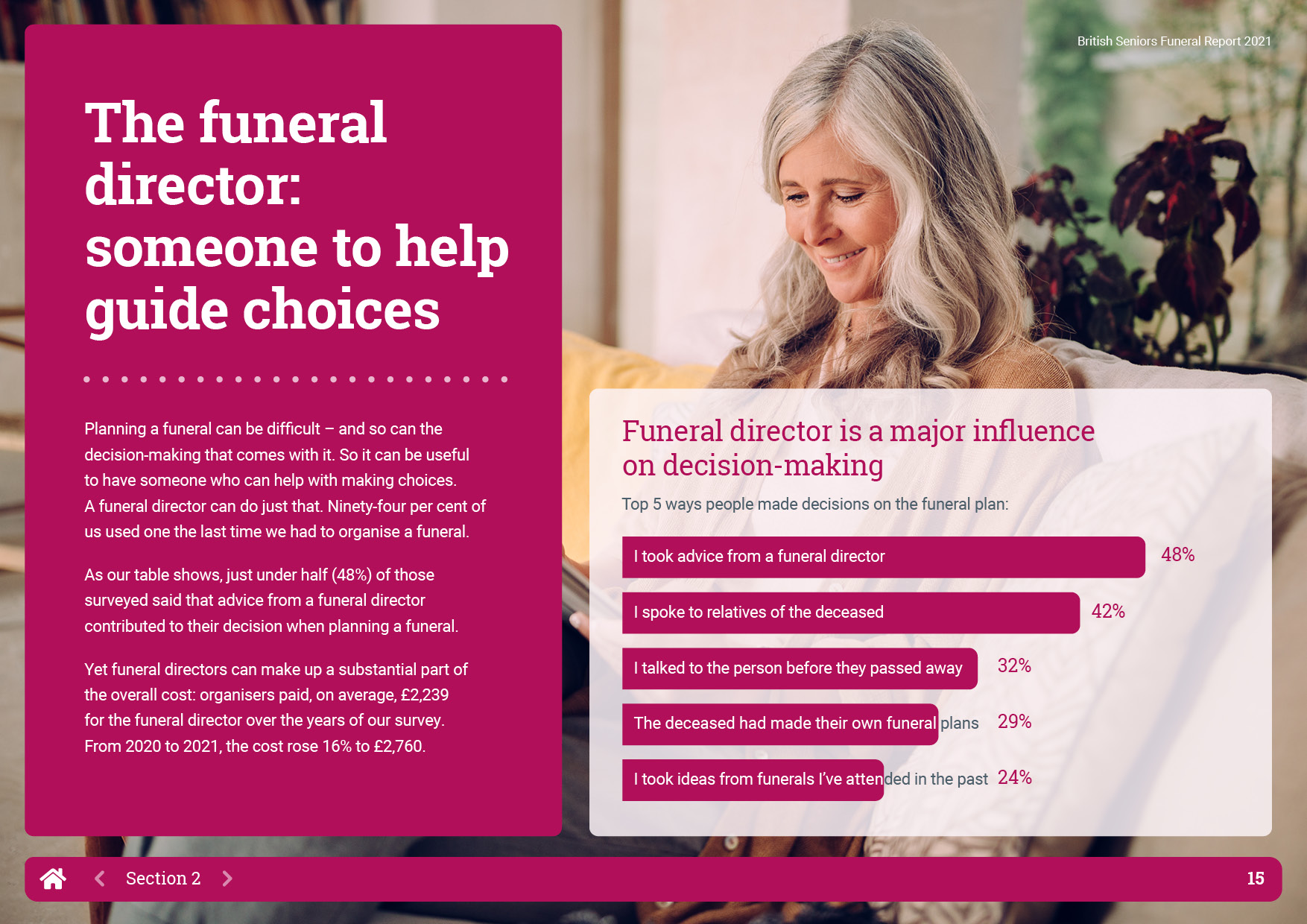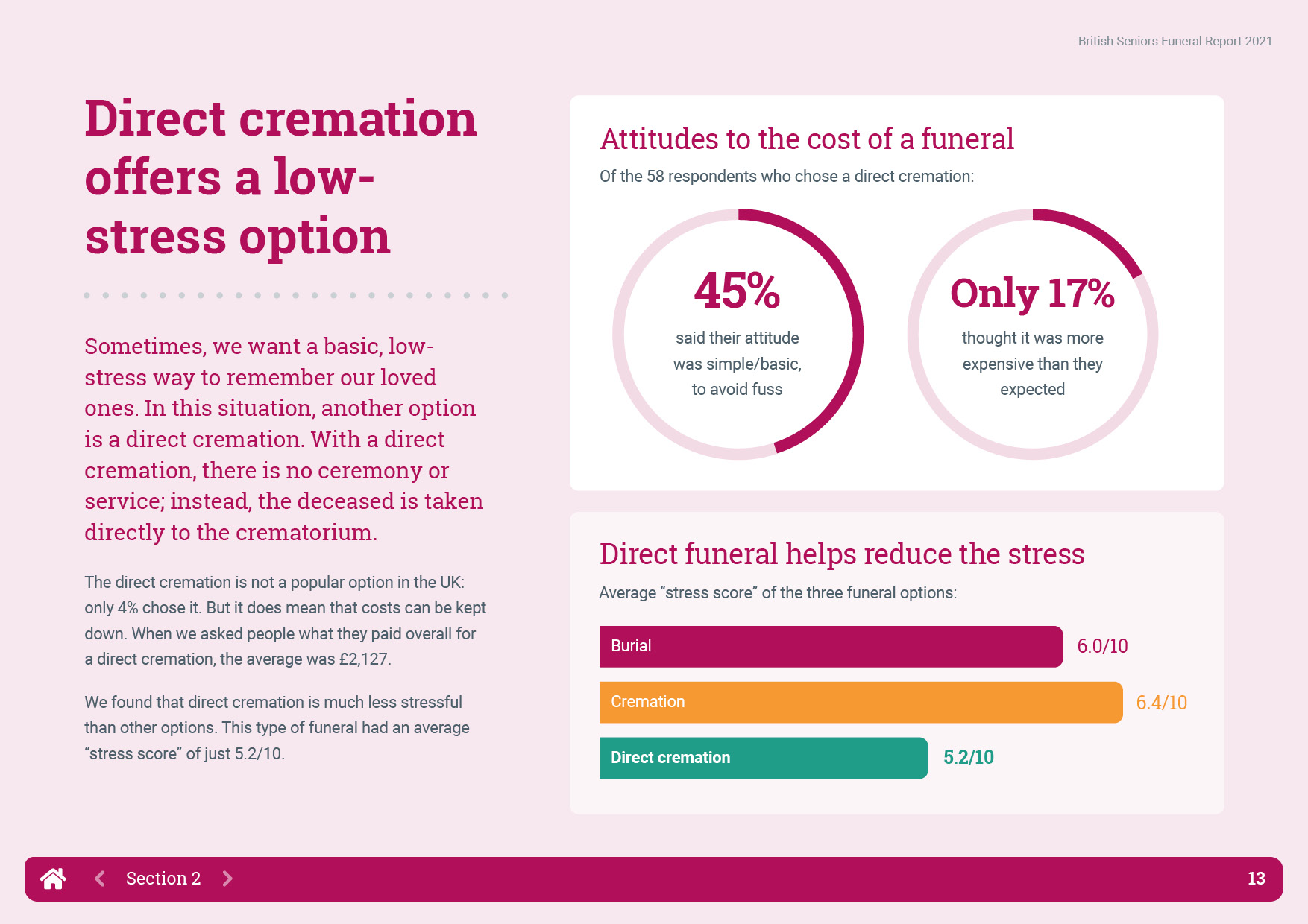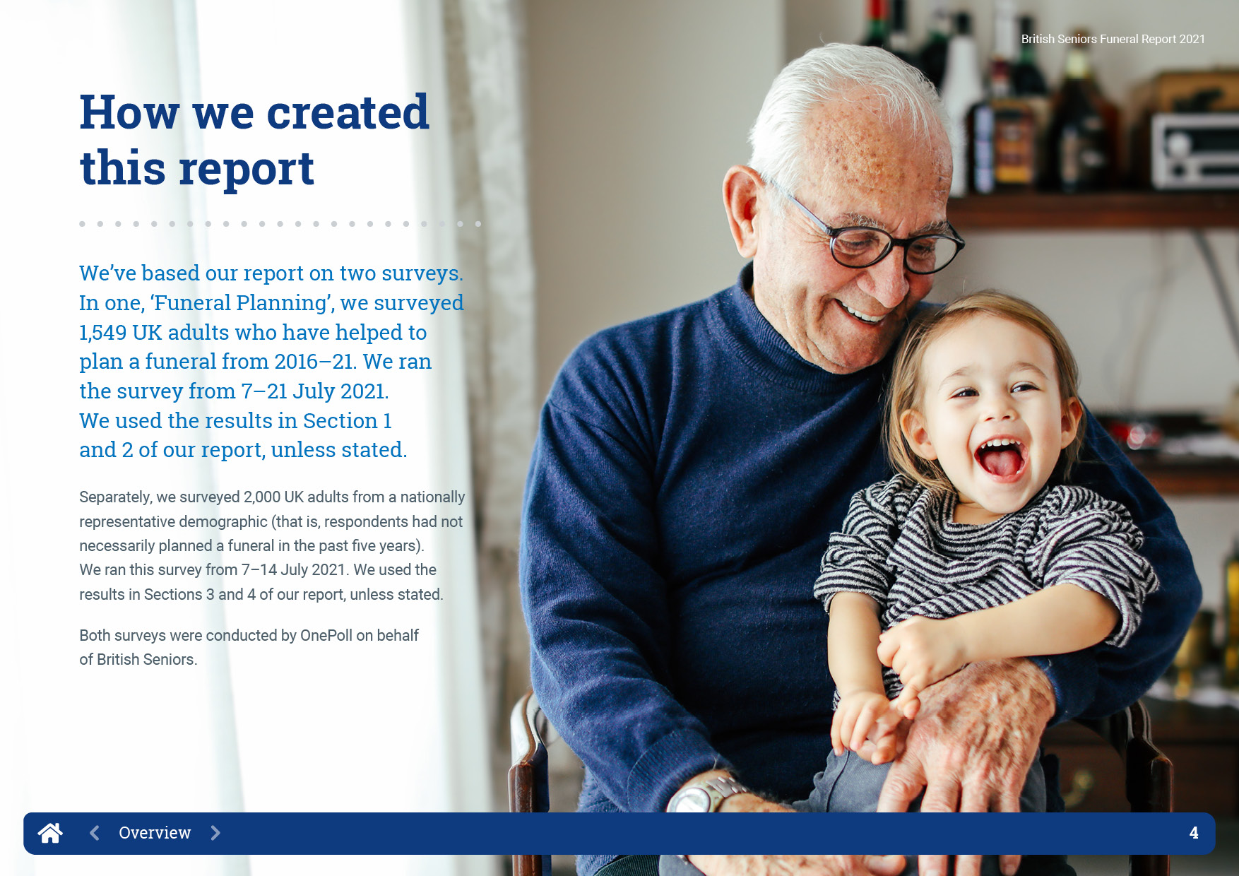 British Seniors Insurance Agency returned to OnePoll for the 2021 update of their Funeral Report which tracks the way that funeral expenses have changed over the last five years. This year however, the report was to be digital only with a landscape format PDF, easy to read layout and interactive navigation.