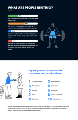 Based on an extensive OnePoll survey, the report looks at which generations are more likely to rent rather than purchase with our research showing that one in three people say they are now more likely than ever before to rent things instead of buying them. On average we spend £277 per month on renting or subscribing to products and services!